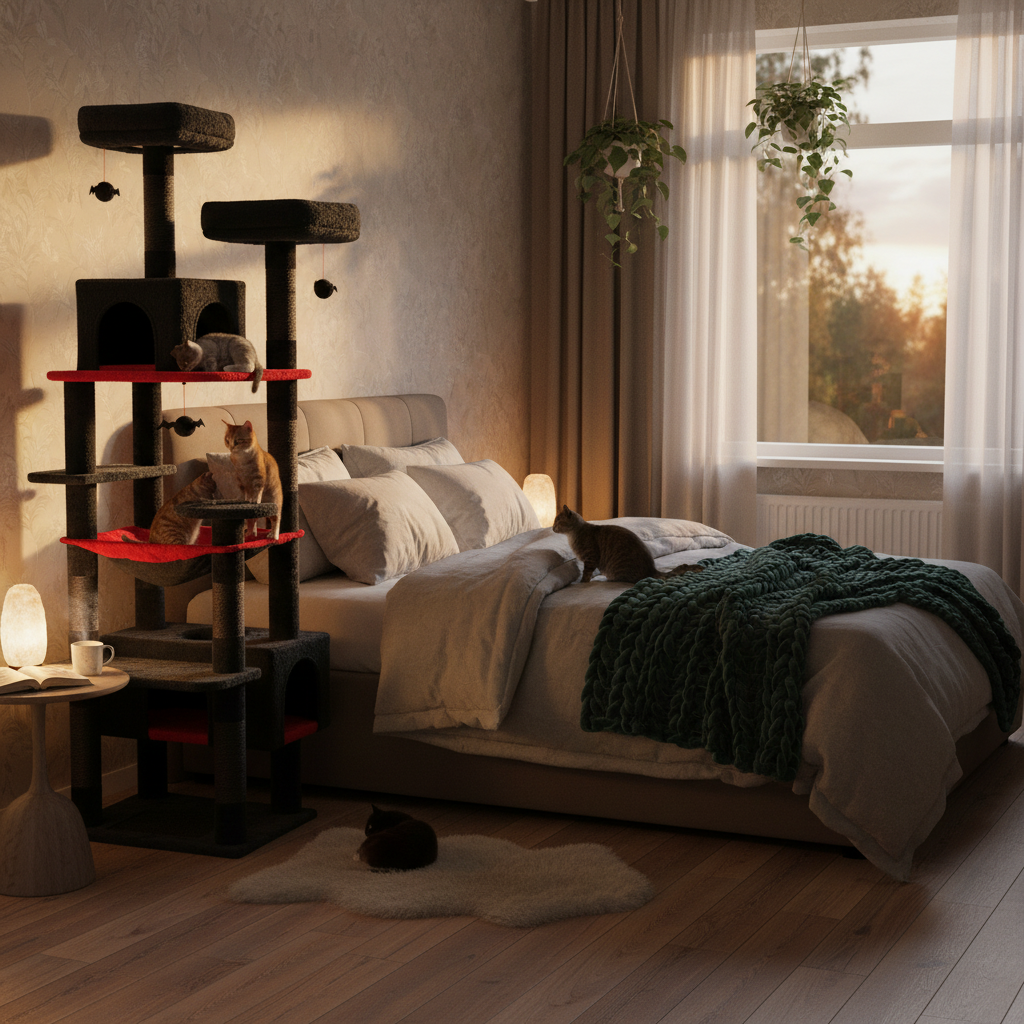 Crafted with a strong base and solid boards, this tree is built to support even larger breeds like Maine Coons or Ragdolls weighing 15–20 lbs. Covered in soft, plush fabric for a cozy feel, every perch, condo, and hammock becomes a safe, comfortable spot for cats to nap in their haunted mansion.