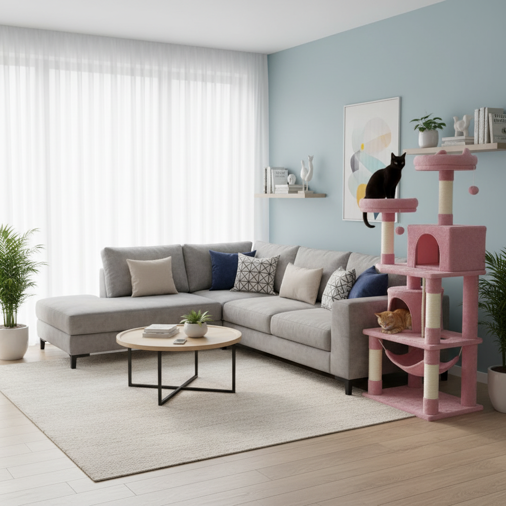 - Durable Scratching Posts: Five sisal-covered posts to promote healthy scratching habits.